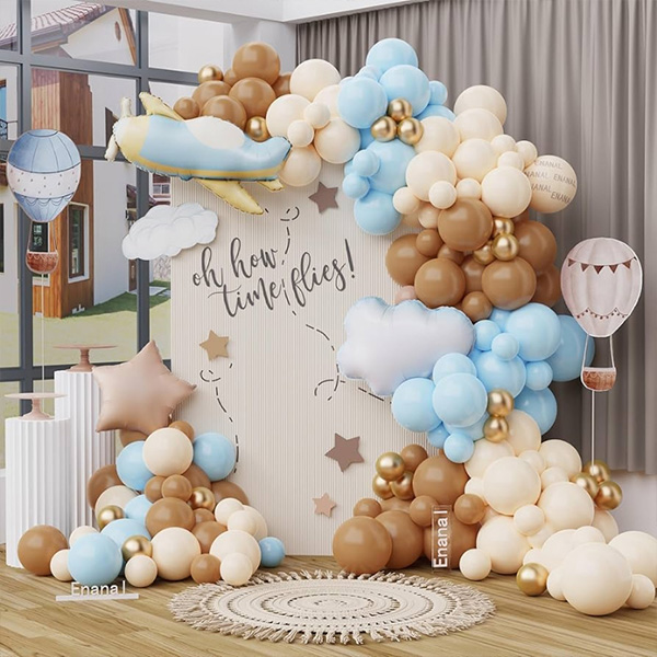 إكليل بالون مع بالون من رقائق الطائرة:تتكون أكاليل البالونات هذه مع بالون فويل الطائرة منبالونات اللاتكس, بالونات احباطوبقع غراء البالون وخطوط الصيد وغيرها من ملحقات البالون. يمكن أن يساعدك استخدام هذه الملحقات في إنشاء قوس بالون بسهولة. بالونات اللاتكس وبالونات الرقائق المعدنية الخاصة بنا مصنوعة من المطاط الطبيعي ومواد رقائق الألومنيوم عالية الجودة، وهي آمنة وغير سامة ويمكن أن تخلق قوس إكليل بالون جميل. إكليل بالونات الطائرة هذا مناسب لمجموعة متنوعة من المشاهد ذات الطابع الخاص، بما في ذلك حفلات أعياد الميلاد، والحفلات التي تحمل طابع الطائرة، والحفلات التي تحمل طابع الذباب الزمني، وحفلات تعميد الأطفال. إنه مثالي لإضافة لمسة من الألوان إلى أي احتفال.