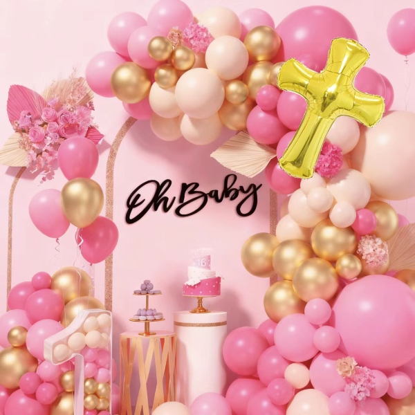 تحتوي مجموعات قوس بالونات استحمام الطفل على نمطين، نمط واحد للفتيات الصغيرات ونمط واحد للأطفال الصغار. مجموعة الطفلة مكونة من بالون وردي معكرون، بالون وردي فاتح غير لامع، بالون لون بشرة فاتح غير لامع، بالون ذهبي معدني وصليب ذهبي بارك الله فيك. مجموعة الطفل الرضيع مصنوعة من بالون باللون الأزرق المعكرون، وبالون بلون أزرق بحري قديم، وبالون بلون بشرة فاتح غير لامع، وبالون ذهبي معدني وصليب ذهبي بارك الله فيك. كلاهما لديه نقطة الغراء ورحلة البالون، يمكنك استخدامها لصنع إكليل جميل بالكامل.