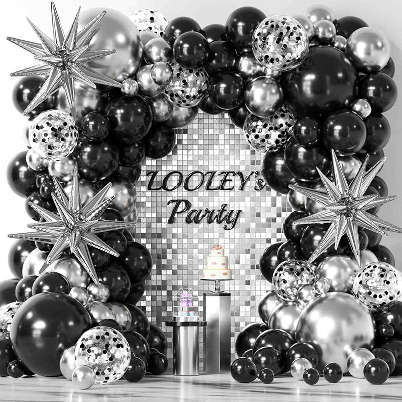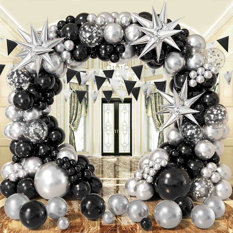 4. مجموعات إكليل بالونات سوداء وفضية خاصة وحصرية.