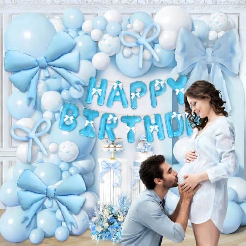 تشمل هذه المجموعة بالون لون أزرق معكرون بمقاس 5 بوصة و10 بوصة و12 بوصة و18 بوصة، ولون أبيض غير لامع بمقاس 5 بوصة و10 بوصة، ولافتة عيد ميلاد سعيد، وبالون على شكل قوس أزرق من رقائق المعكرون، وبالون أزرق معكرون بطول 260 درجة، وقوس شريطي، ونقطة صمغ وشريط تزيين بالون.