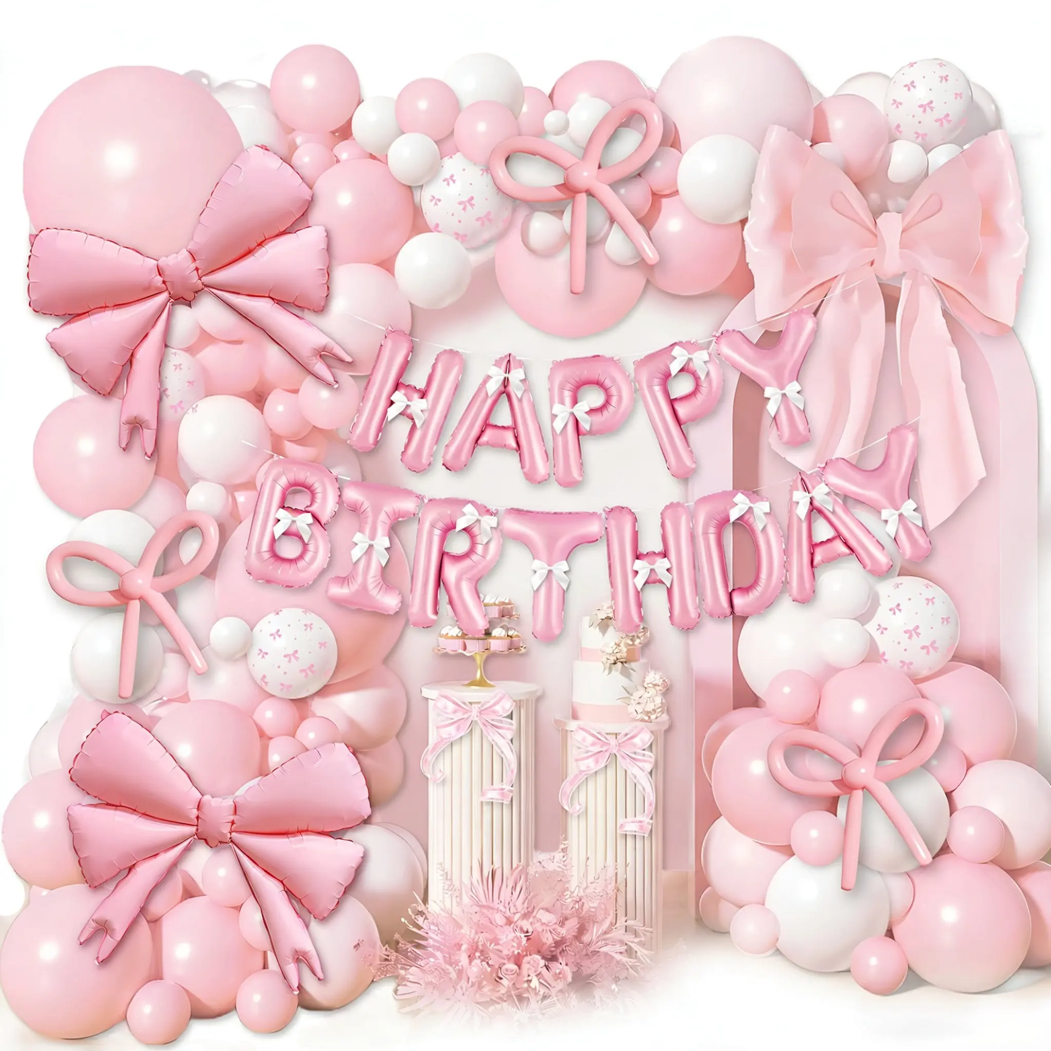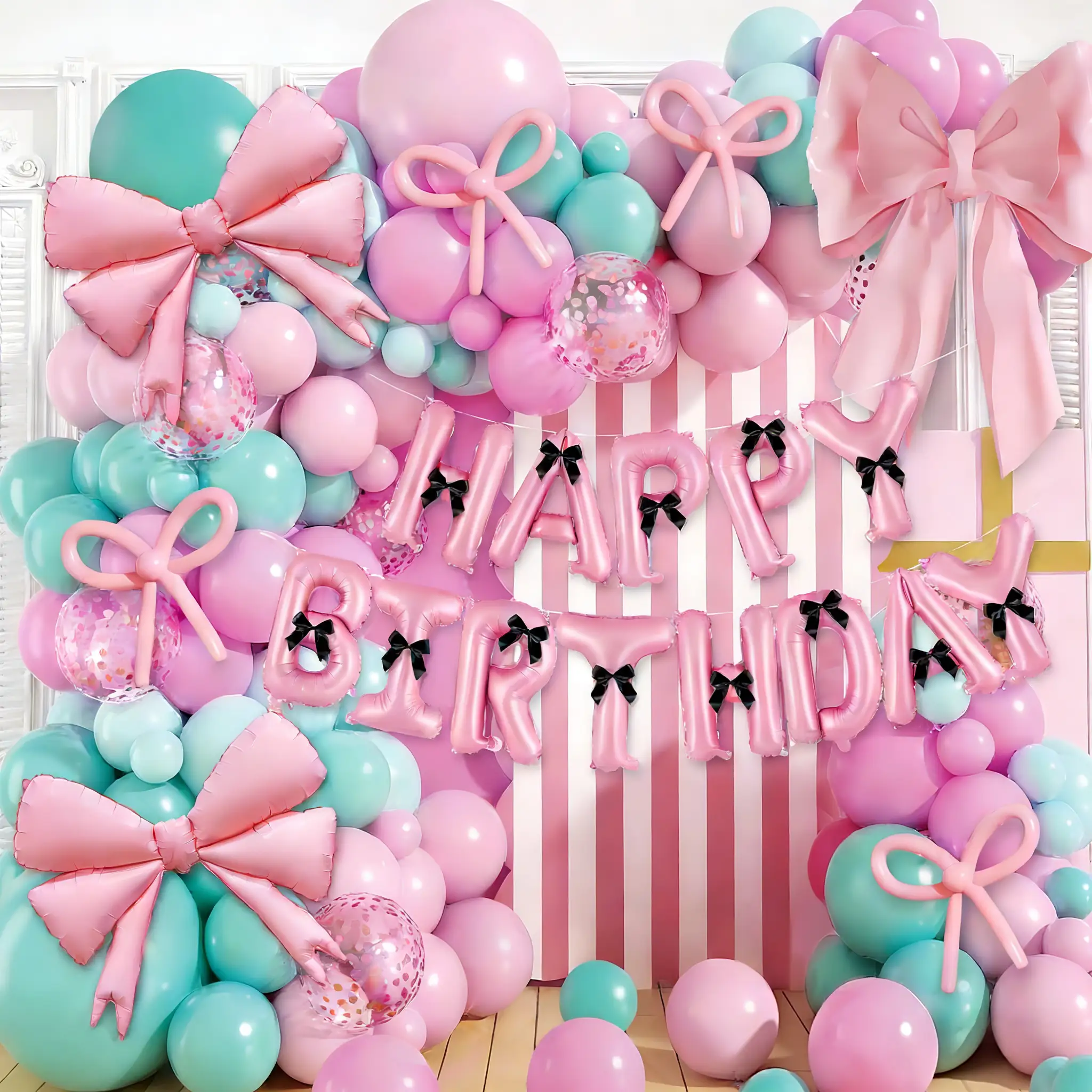 تشمل هذه المجموعة بالون وردي صغير غير لامع بمقاس 5 بوصة و10 بوصة و12 بوصة و18 بوصة، ولون أبيض غير لامع بمقاس 5 بوصة و10 بوصة، وبالون على شكل فيونكة وردية فويل، وبالون وردي صغير غير لامع بطول 260 درجة، وقوس شريطي، ونقطة صمغ وشريط تزيين بالون.