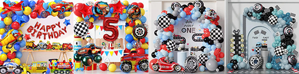 إذا كنت ترغب في استخدامها في الحفلات الصغيرة، أو كزينة. يمكنك اختيار مجموعات صغيرة من البالونات المصنوعة من رقائق الكرتون التي نطابقها لك. تشتمل هذه المجموعة عادةً على بالون فويل كبير للسيارة الكرتونية، وبالون فويل مستدير مقاس 18 بوصة وبالون فويل على شكل نجمة مقاس 18 بوصة. تبدو هذه البالونات جميلة جدًا ويمكن أن تعزز جمال الصور. إن تزيينه على الحائط الرئيسي يسمح للضيوف بالتقاط صور مثالية على وسائل التواصل الاجتماعي، لأنه كما نعلم، بدون صورة ذات خلفية مثالية، لا تكتمل الحفلة.