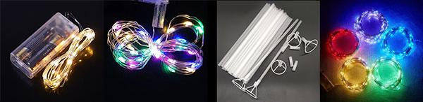 شرائط إضاءة LED، أنبوب بلاستيكي، كوب بالون، ريشة |