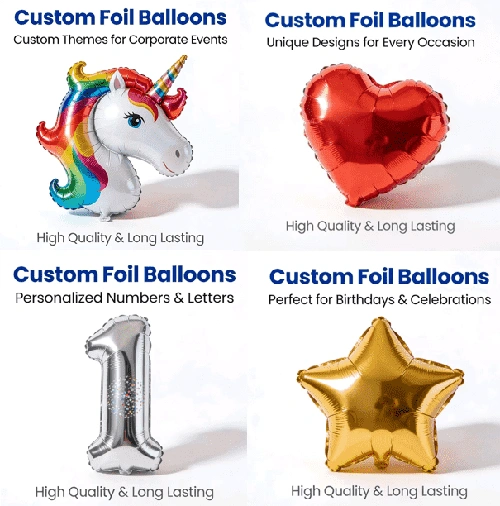 يمكن تخصيص بالونات الفويل المخصصة بالأحجام التقليدية بما في ذلك 5 و10 و18 و24 و36 بوصة. يمكن أيضًا تخصيص الأشكال والأحجام الخاصة غير المنتظمة وفقًا للمتطلبات.