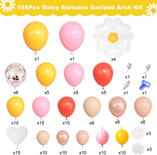 يبلغ عدد البالونات الموجودة في مجموعة قوس بالون الأقحوان حوالي 150 قطعة، ويمكن تخصيص الكمية المحددة وفقًا لاحتياجاتك. بغض النظر عن أنواع البالونات التي تريد إضافتها، سنقدم لك الأفضل.