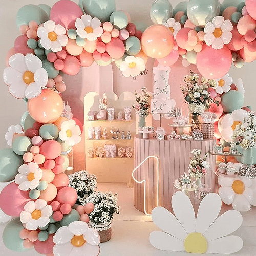حفلة عيد الميلاد: يمكن استخدام إكليل البالونات ديزي كديكور خلفية لحفلات أعياد الميلاد، وهو مناسب لترتيب حفلات أعياد ميلاد الأطفال أو النساء، مما يخلق جوًا مبهجًا.