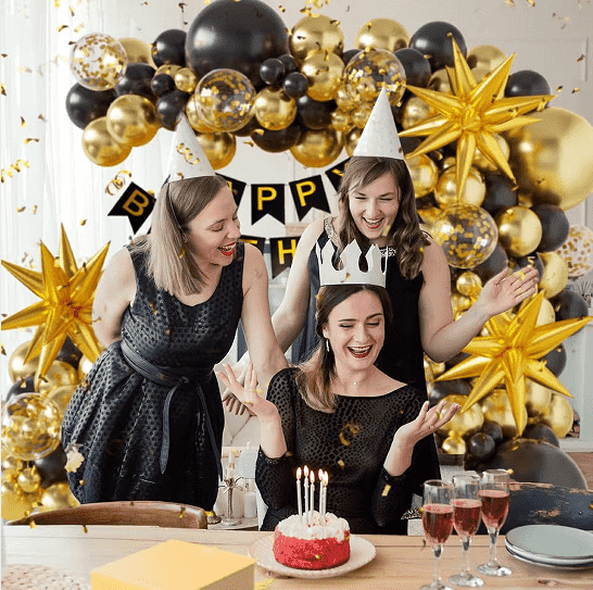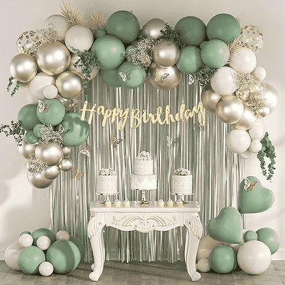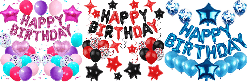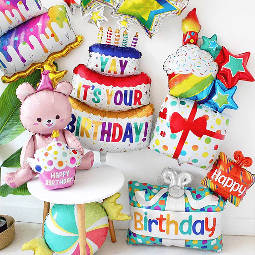 النمط الأساسي هو بالون لاتكس لعيد ميلاد سعيد بنفس اللون أو باللون المكملعيد ميلاد سعيد بالونات احباطأوبالونات احباط أرقام. الأنماط الكلاسيكية تحتوي على بالون هلامي من مسحوق الماكارون الوردي، بالون فويل عيد ميلاد سعيد، بالون لاتكس أسود، بالون فويل ذهبي اللون. يمكن تعليق بالونات اللاتكس في سلسلة بالونات وتعليقها على الحائط أو السقف، مع استخدام بالونات الفويل كمركز بصري وكمية صغيرة من زخرفة الشريط لخلق جو احتفالي بسيط ومحكم بسرعة.