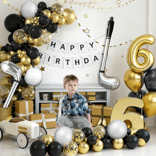 إلى جانب البالونات، يمكنك أيضًا إضافة بعض الملحقات لإضافة النمط، مثل خلفية موضوع الجولف أو غيرها من الديكورات ذات الطابع الخاص. يمكنك أيضًا استخدام البالونات الموجودة في المجموعة لإنشاء تأثيرات أخرى. مثل ثقب في مجموعة بالونات فويل واحدة أو ثقب في مجموعة بالونات مطاطية واحدة. كل منهم يمكن أن يكون له تأثير مثالي في الحفلات الخاصة بك.
