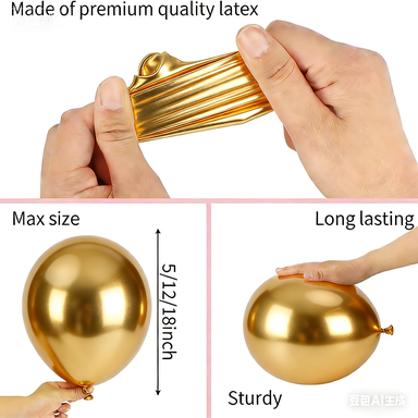 بالونات اللاتكس التي نقدمها للفتحة في مجموعة إكليل البالونات مصنوعة من اللاتكس الطبيعي بنسبة 100% والتي تم استيرادها من جنوب شرق آسيا. أحجامها هي 5 بوصة، و10 بوصة، و12 بوصة، و18 بوصة، ومن خلال ترتيبها بأحجام مختلفة، يمكن إنشاء تأثير طبقات جذاب.