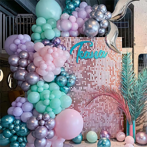 يحتوي هذا البالون اللاتكس لمجموعة قوس البالونات على شكل حورية البحربالونات غير لامعة, بالونات الماكرون, بالونات معدنية وغيرها من ألوان البالونات المختلفة، بالونات اللاتكس الأزرق والأخضر والأرجواني معًا لتشكل نظام ألوان كلاسيكي لحورية البحر، وجودة هذه البالونات اللاتكس جيدة جدًا، حيث تصل إلى المعايير الرائدة في الصناعة. بعد اختبار قوة الشد، يتم تمديده إلى 3-5 أضعاف الطول الأصلي دون تمزق، مع مرونة وصلابة ممتازة. اجتاز اختبار ضيق الهواء، ثابتًا بعد 24 ساعة من النفخ، لا يوجد تسرب واضح للهواء. وفي الوقت نفسه، تتميز بالونات اللاتكس هذه أيضًا بمقاومة جيدة للتآكل. في الترتيب والاستخدام اليومي، حتى لو كان بها احتكاك طفيف مع العناصر الأخرى، فلن تتضرر بسهولة. علاوة على ذلك، فإن ثبات اللون مرتفع للغاية، والتعرض طويل الأمد لأشعة الشمس أو البيئات المختلفة، ولا يزال اللون ساطعًا كما كان من قبل، ولن يكون هناك بهتان أو تغير في اللون. سواء في الداخل أو الخارج، يمكن تعديل بالونات اللاتكس هذه بشكل مثالي لخلق جو حالم وساحر لقوس إكليل البالونات الذي يتميز بطابع حورية البحر.