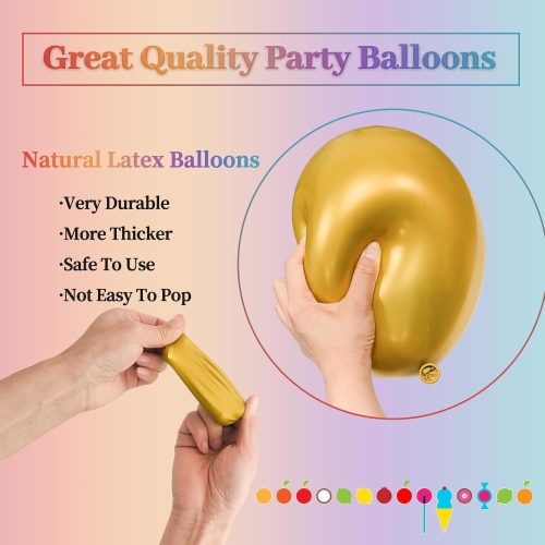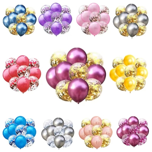 يمكنك اختيار لون معدني واحد للعبوة. الخيارات الشائعة هي الذهب الشمبانيا والأخضر المعدني والذهبي الوردي وما إلى ذلك. فهو يجعل المشهد الخاص بك يبدو بسيطًا ومجمعًا. انها تمتد بشكل جيد حقا. نادرا ما ينبثق. يبقى ممتلئًا لأكثر من 12 ساعة بعد النفخ. يمكنك أيضًا مزج ظلال معدنية مختلفة. جرب الذهب والفضة معًا. وهذا يخلق ديكورًا متعدد الطبقات وملفتًا للنظر. قم بإقران هذه البالونات مع بالونات قصاصات الورق أيضًا. يتناقض اللمعان الناعم للبالونات المعدنية مع الملمس اللامع للبالونات الورقية. تتحرك القصاصات في الداخل عندما تهزها. وهذا يضيف المرح والحركة إلى أي مساحة. مجموعات البالونات الصغيرة ذات الألوان المعدنية مناسبة لحفلات أعياد الميلاد وحفلات الزفاف ومناسبات العطلات وعروض نوافذ المتاجر. تمر كل مجموعة باختبارات صارمة لضيق الهواء والسلامة. إنها تلبي المعايير الدولية مثل EN71 وCE. تضخيمها سهل. حتى المبتدئين في مجال الأعمال اليدوية يمكنهم استخدامها. إنهم محبوبون من قبل مخططي الأحداث المحترفين أيضًا. ستنشئ مساحة ذات جو مذهل.