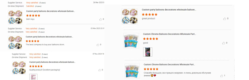 تأتي المجموعات الصغيرة من البالونات الملونة المعدنية مقاس 12 بوصة في خيارين. يمكنك اختيار العبوة المدمجة المكونة من 12 قطعة أو العبوة الكبيرة المكونة من 30 قطعة. العبوة المكونة من 12 قطعة مناسبة للحفلات الصغيرة. يناسب ديكورات الطاولة وأزواج الهدايا أيضًا. إنه يوفر قيمة جيدة واستخدامًا عمليًا. المجموعة المكونة من 30 قطعة تناسب الاحتياجات الأكبر. إنه مثالي لتزيين الجدران وبناء قوس البالون. يمكنك اختيار الخيار المناسب بناءً على سيناريو الشراء الفعلي. لدينا أكثر من 10 سنوات من الخبرة في المبيعات. تحتوي الحزمة المكونة من 12 قطعة على سيناريوهات أكثر قابلية للتطبيق. أنها أكثر شعبية بين العملاء.