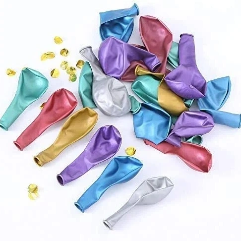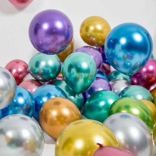 تُستخدم بالونات اللاتكس المعدنية على نطاق واسع بسبب تشطيبها. بالمقارنة مع البالونات القياسية، يتمتع السطح بمظهر أكثر عاكسًا، مما يجعلها أكثر ملاءمة للديكور وعرض البيع بالتجزئة.