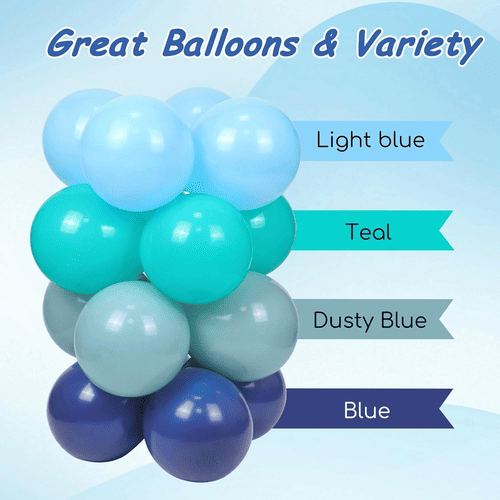 تتكون مجموعة قوس البالونات لحفلات المحيط بشكل أساسي منبالونات اللاتكسوبالونات رقائق المحيط. لتلبية موضوع المحيط، تكون بالونات اللاتكس بشكل أساسي بلون أزرق مختلف. أحجامها هي 5 بوصة و10 بوصة و12 بوصة و18 بوصة، ويمكن للأحجام المختلفة أن تصنع طبقات جميلة وجذابة.