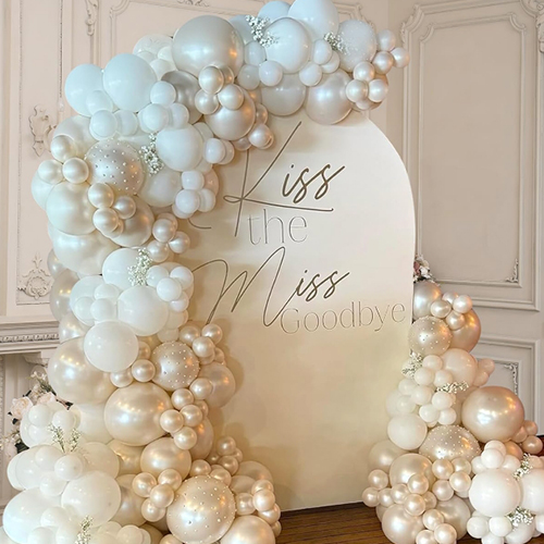 قوس بالون بيرل برايدل مناسب لحفلات الزفاف، وحفلات الخطوبة، وحفلات ما قبل الزفاف، واحتفالات أعياد الميلاد، وحفلات تعميد الأطفال أو أي حفلات ذات طابع خاص، مما يضيف جوًا حالمًا ورومانسيًا إلى الحدث.