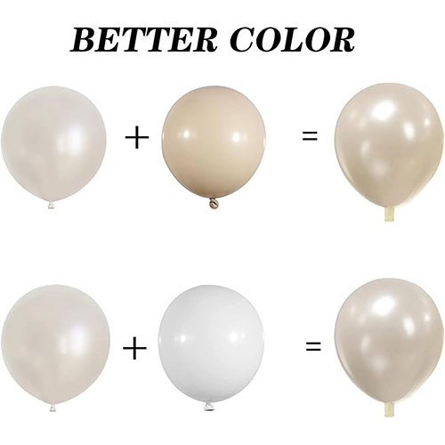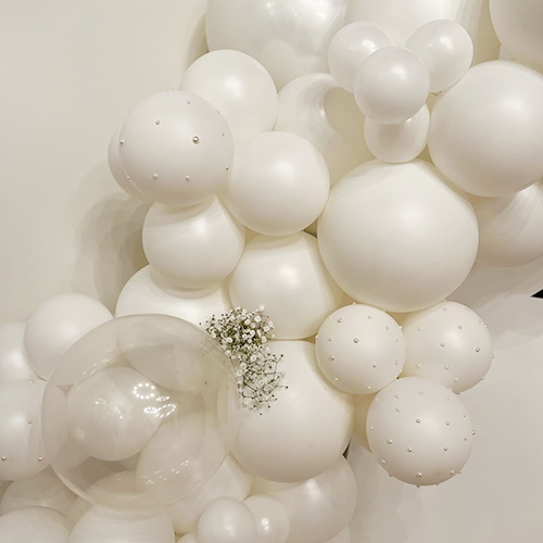 لجعل قوس بالون الزفاف اللؤلؤي الخاص بك أكثر إشراقًا وإبهارًا، تستخدم عبوتنا بالونات مزدوجة الطبقة. لا يزيد التصميم ذو الطبقة المزدوجة من الإحساس ثلاثي الأبعاد للبالون فحسب، بل يجعل اللون أكثر امتلاءً وغنيًا.