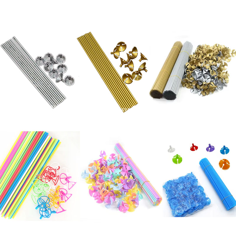 عصي بلاستيكية معدنية ، عصي بلاستيكية معكرون ، عصي بالون بلاستيك بيضاء مع أكواب ، عصي بالون بلاستيك ملون مختلط