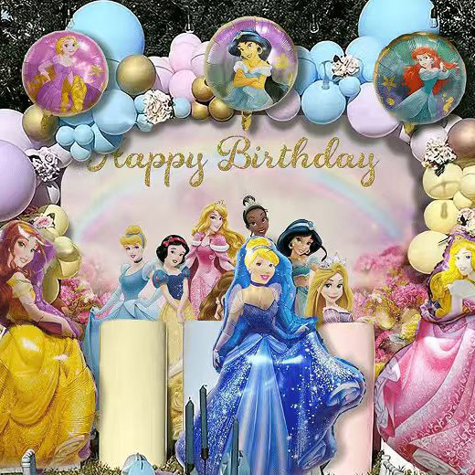 تتضمن مجموعة البالونات بالونات لاتكس على شكل الأميرة وبالونات فويل. إنها لا تحتوي فقط على خصائص الترتيب السهل لمجموعة بالونات اللاتكس، ولكنها تجمع أيضًا بين تأثير الزخرفة ثلاثي الأبعاد لمجموعة بالونات الرقائق المعدنية. في الوقت نفسه، مع الزخارف مثل الخلفية ومفارش المائدة، يمكن لكل من حفلات أعياد الميلاد الداخلية وأنشطة الفناء الخارجي تحقيق تأثيرات زخرفية متعددة المستويات بدءًا من البساطة وحتى التحسين من خلال التجميع المرن، ومناسبة بشكل خاص للمستخدمين الذين يتابعون التصميم الشخصي ويريدون توفير الوقت.