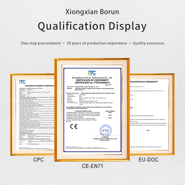 ثانيًا، تأتي بالوناتنا مع ضمان الجودة. لقد اجتازوا CE، EN71-1/2/3، وحصلوا على اعتراف الجودة الدولية.