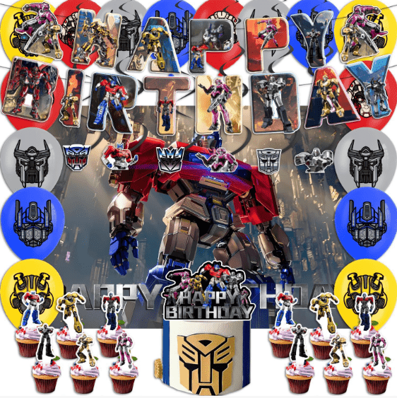 مزيج كلاسيكي: بالون فويل المتحولون مع علم موضوع بالون اللاتكس الملون، بالون اللاتكس كقاعدة، بالون فويل كالجوهر البصري، العلم كديكور للموضوع، مناسب لحفلات أعياد الميلاد، واحتفالات المهرجانات بالتصميم الأساسي.