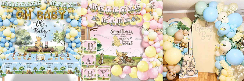 ميزات المنتج مثل هذا. تتميز بالونات اللاتكس ويني ذا بوه بمرونة جيدة. ليس من السهل كسرها. يبقون في شكل كامل لفترة طويلة. يحدث هذا بعد التضخم. تحتوي المجموعة أيضًا على مزيج غني. تحتوي على بالونات بمختلف الألوان والأحجام. بالإضافة إلى ذلك، غالبًا ما تحتوي على لافتات موضوعية. كما أن لديها لوحات خلفية وزخارف زخرفية. ويغطي أشياء كثيرة. تتراوح هذه الأشياء من زخرفة الخلفية إلى لهجات الطاولة. تلبي احتياجات تزيين الحفلات في مكان واحد. يجعل عملية الزخرفة سهلة. كما أنه يجعل عملية الزخرفة مريحة.